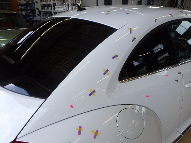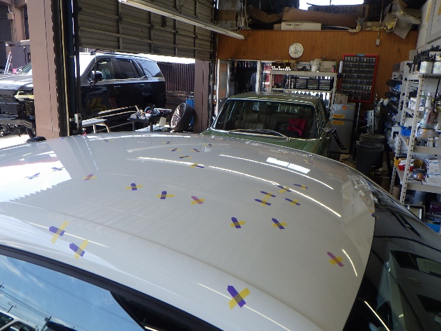 雹被害による損傷、ドアシルパネル損傷での入庫になります。