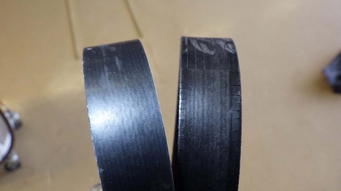 右側が既存のドライブベルトで両サイドにひび割れを起こしておりました