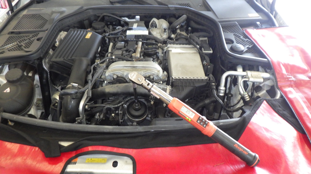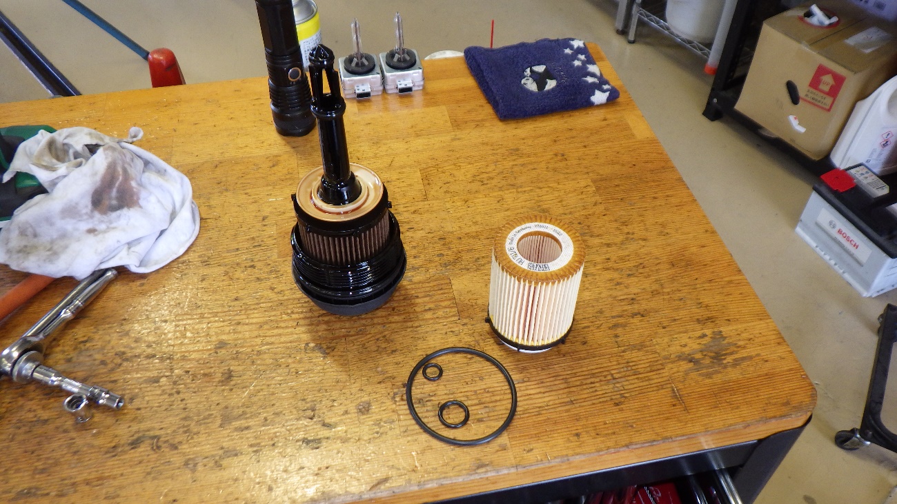 エンジンオイルフィルターの交換後、規定トルクにて締め付けております。