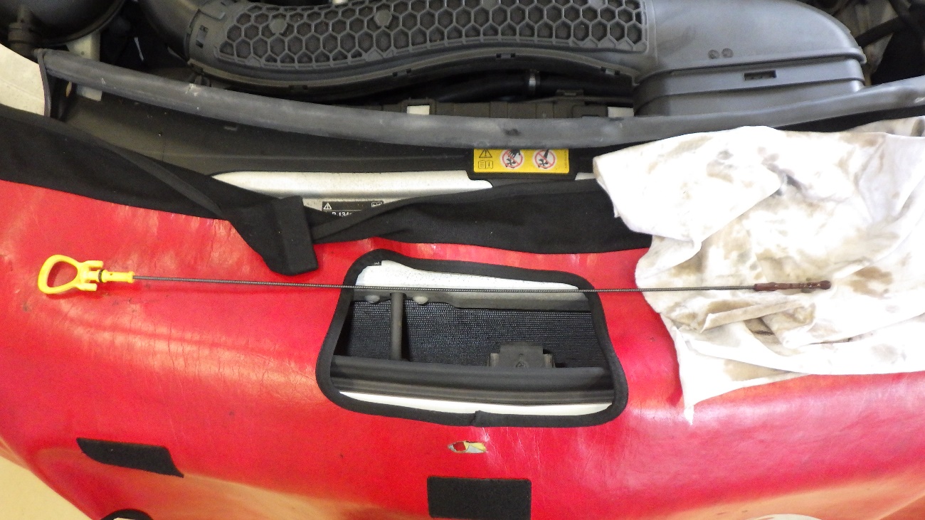エンジンオイル交換後、レベルゲージにてオイル量を調整しております。