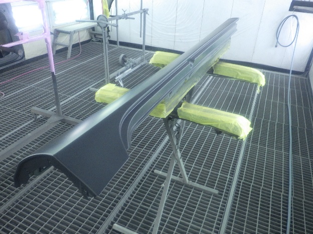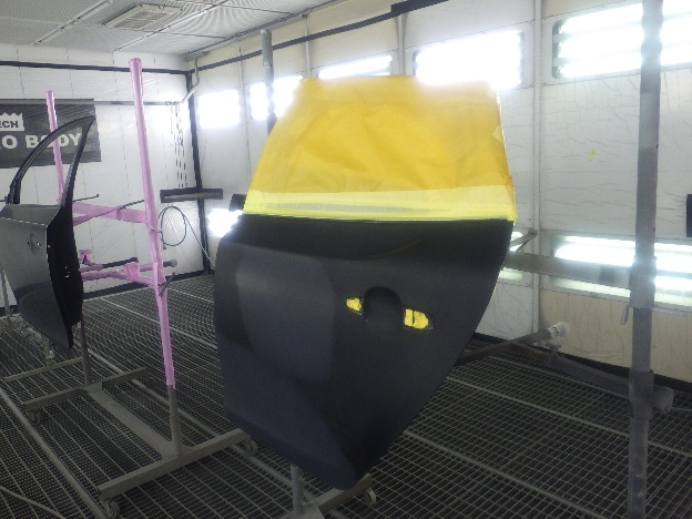 ベースコート(黒)、トップコート(クリアー)の順に塗装作業を行いました。