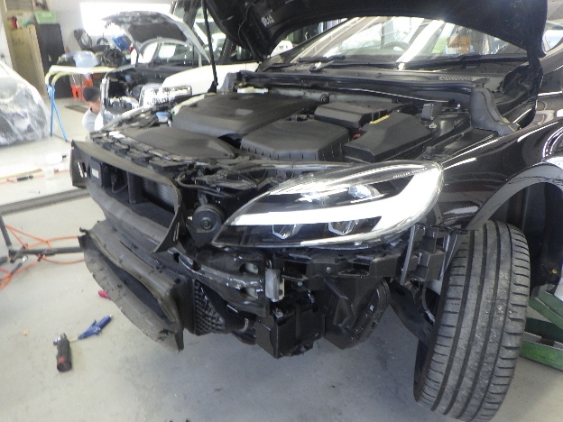 板金作業の後、パテの密着性向上の為、プライマーの塗装作業を行いました。